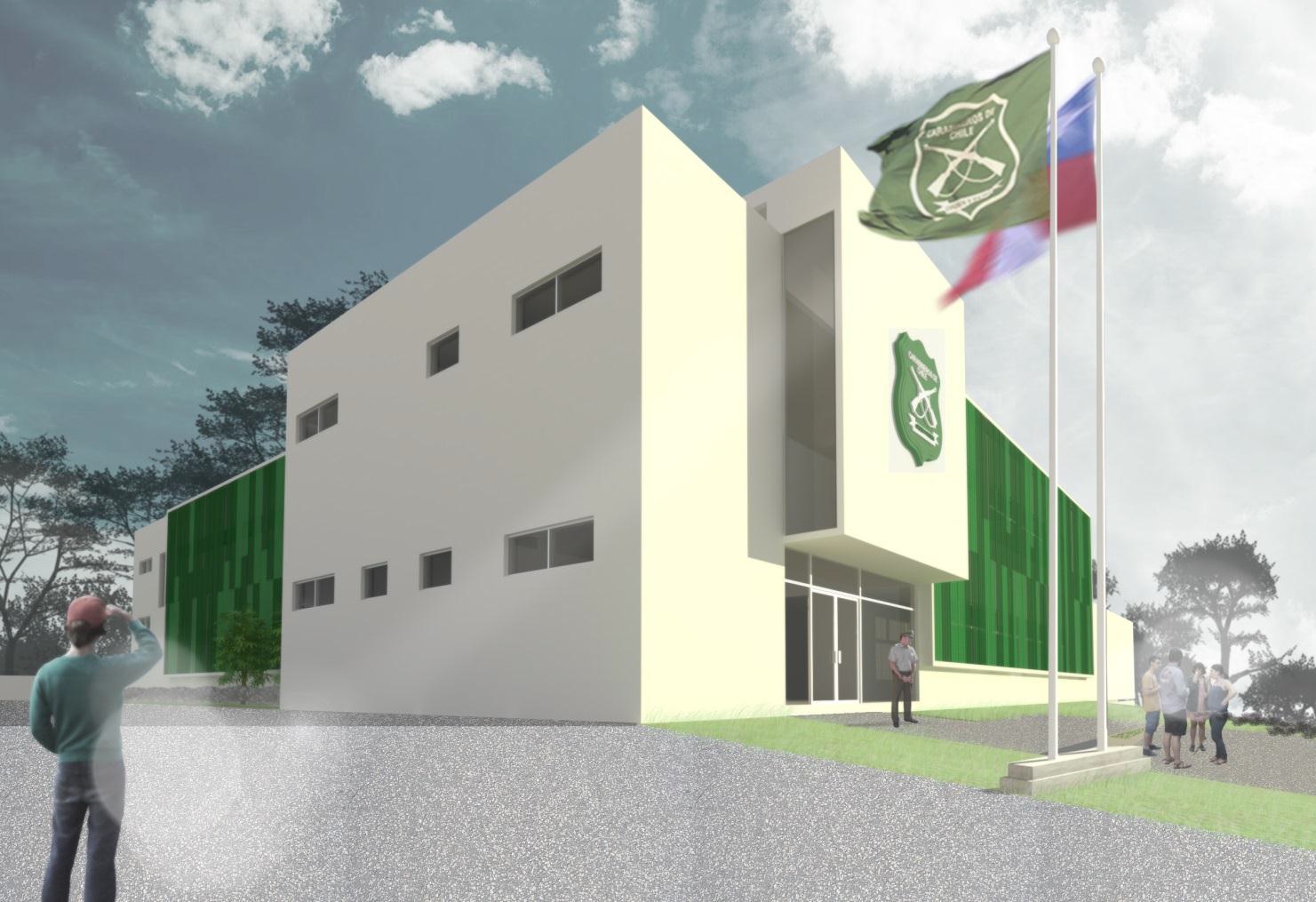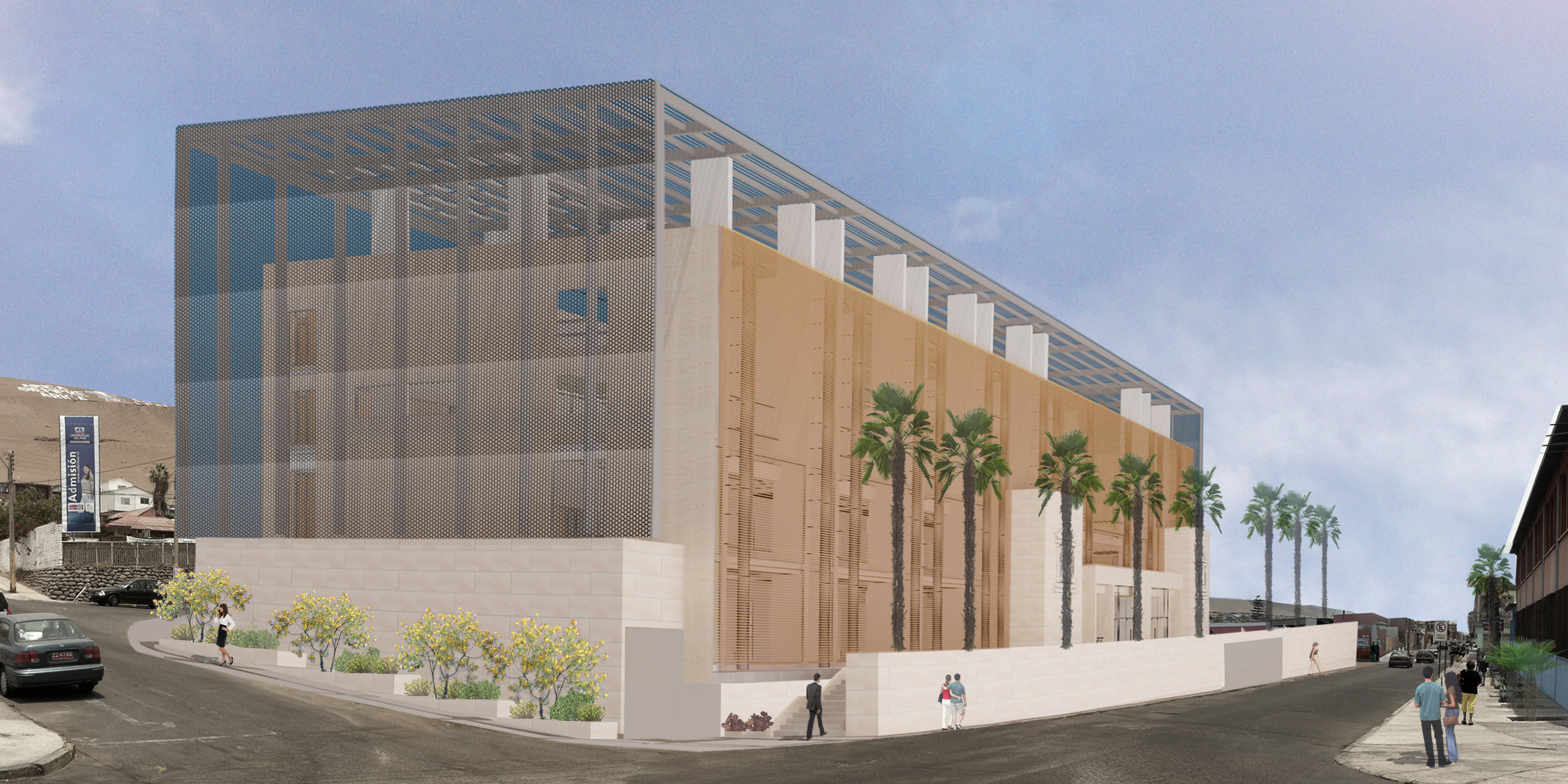 Descripción Obra : El proyecto ocupa la manzana completa, resuelve la pendiente del terreno por medio de un piso zócalo que se plantea como plataforma o terraza de acceso y contiene estacionamientos y servicios comunes. Formalmente el proyecto se plantea como un volumen único de tipo rectangular y planta de geometría regular ortogonal de 4 pisos sobre plataforma de acceso y piso de terraza de cubierta con sombreadero. Estructuralmente el proyecto se propone en base a sistema mixto de muros, pilares y vigas con losas de hormigón armado de entrepiso y cubierta descargando sus esfuerzos estáticos y dinámicos a terreno en forma repartida y uniforme mediante fundación corrida.