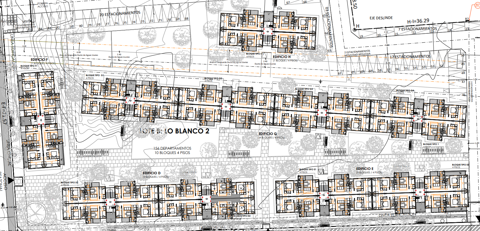 Descripción Obra : 72 CASAS+24 DEPARTAMENTOS+ 1 EQUIPAMIENTO SOCIAL(SEDE), CONTEMPLA ESTACIONAMIENTO PARA 89 AUTOMOVILES +2 VISITAS+9 BICICLETAS