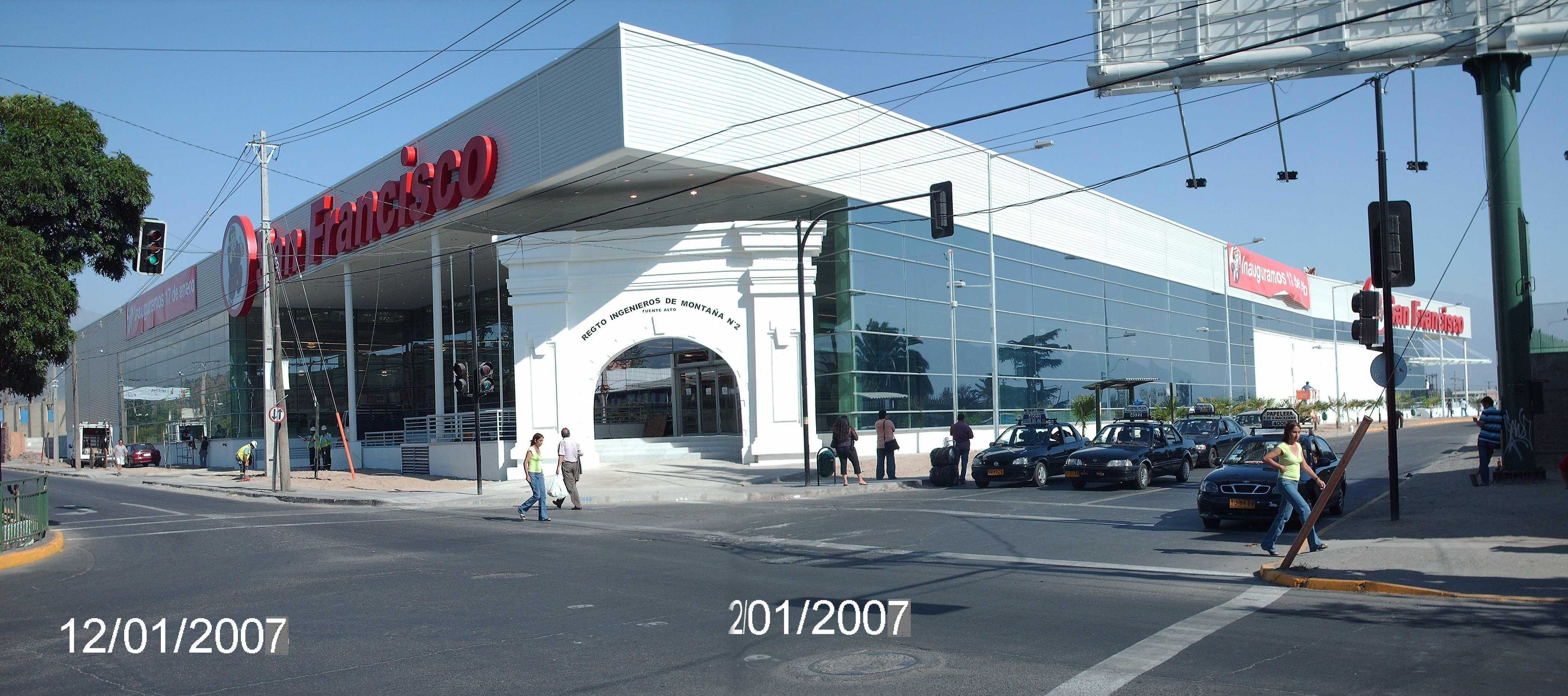 Descripción Obra : Construcción de un supermercado San Francisco, en estructuras de hormigon armado y muros cortina en las fachadas, en tres niveles (Subterráneo, Tienda y Tras-tienda) y todas las obras exteriores para estacionamiento públicos y carga y descarga. El proyecto incluye todas las terminaciones, mobiliario e instalaciones especiales para el Supermercado ( Incluye Correo Neumático, cuartos fríos, rieles para carnes, etc.)