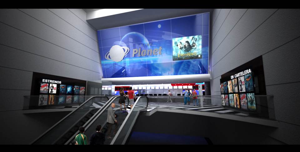 Descripción Obra : Habilitación de la obra gruesa para el Complejo Cineplanet en el 6° Piso del Mall Costanera Center. Son 7 salas de cine 35mm + 3 Salas 3D con todos sus servicios, boleterías, baños, cafetería, etc. + 2 Salas de Cine Premiun o V.I.P. con todos sus servicios y un restaurante y bar. Todas las anteriores terminadas con sus butacas, cielos, cortinas y pantallas de protección. En un nivel superior se habilitaron las salas de proyección con todas sus instalaciones y equipos