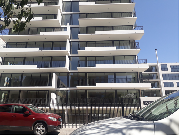 Descripción Obra : Edificio emplazado en el sector sur de la Villa Militar del Este, 18 pisos y 2 subterráneos,112 departamentos, 213 estacionamientos y 177 bodegas,